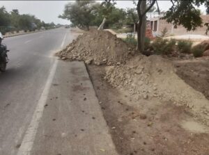 एनएचएआई विभाग द्वारा हाइवे पर गिराई जा रही मिट्टी
