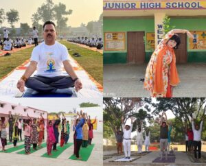 बदायूँ : 21 जून। पूरे विश्व में आठवां अंतर्राष्ट्रीय योग दिवस मनाया गया। इस मौके पर जनपद में शरीर को फिट रखने के लिए योग गुरुओं ने कई आसनों के जरिए जनपदवासियों को फिट रहने के गुर बताए। जिला प्रशासन की ओर से विश्वयोग दिवस पर मुख्य कार्यक्रम पुलिस परेड ग्राउन्ड में हुआ। मुख्य अतिथि उत्तर प्रदेश के राज्य औद्योगिक विकास के राज्यमंत्री जसवन्त सैनी द्वारा मां सरस्वती के चित्र के समक्ष दीप प्रज्जवलित कर एवं माल्यार्पण कर कार्यक्रम का शुभारंभ किया गया। योग दिवस पर योगासनों के जरिए आमजन को सेहतमंद रखने का संकल्प लिया।