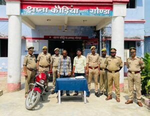 दिनांक 16.08.2022 को वादी प्रवीण तिवारी पुत्र रामसेवक तिवारी निवासी ग्राम ककरहवा रनियापुर थाना विशेश्वरगजं जनपद बहराइच द्वारा थाना कौडिया पर सूचना दी गयी कि उसके पिता का किसी अज्ञात व्यक्ति द्वारा अपहरण कर लिया गया है। सूचना पर थाना स्थानीय में सम्बन्धित धाराओं में अभियोग पंजीकृत किया गया। घटना को संज्ञान में लेते हुए पुलिस अधीक्षक गोण्डा आकाश तोमर ने अपर पुलिस अधीक्षक गोण्डा शिवराज के पर्यवेक्षण में घटना के जल्द से जल्द अनावरण हेतु थानाध्यक्ष कौडिया को निर्देशित किया गया था। घटना संदिग्ध प्रतीत होने पर गहनता से विवेचना की गई तो यह तथ्य प्रकाश में आया कि वादी मुकदमा द्वारा स्वयं पैसो के लालच में आकर ग्राम घुचुवापुर मौजा कोचवा के अपने एक साथी रामकृपाल पाठक उर्फ बड़कऊ पुत्र रामफेरे पाठक के साथ मिलकर अपने पिता की हत्या कर दी व लाश को छिपाने के उद्देश्य से एक बोरी में लाश को भरकर उसे चादर से ढक कर आर्यनगर नहर पुलिया से फेंक दिया गया था। आज दिनांक 04.09.2022 को मुखबिर खास की सूचना पर दोनो अभियुक्तगणो को ग्राम रनियापुर ककरहवा मोड़ बहद ग्राम सहजनवा के पास से गिरफ्तार कर लिया गया। अभियुक्त रामकृपाल पाठक उर्फ बड़कऊ के पास से हत्या करने के लिये दिये गये 10 हजार रुपयों में से 4600 रुपये व हत्या के बाद लाश छिपाने के समय प्रयोग की गयी मोटर साइकिल व लाश को ढकने के लिये प्रयोग की गयी चादर बरामद कर लिया गया। अभियुक्तगणों के विरूद्ध थाना कौड़िया पुलिस द्वारा विधिक कार्यवाही की गयी।