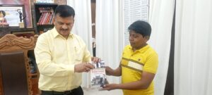 नानपारा /बहराइच- नानपारा के युवा साहित्यकार रोशन जमीर ने अपने द्वारा लिखित पुस्तक गंगा जमुनी तहजीब का प्रतीक रियासत नानपारा पुस्तक की एक प्रति जनहितेषी ,गो सेवक एवं साहित्यकार जिला अधिकारी बहराइच डॉक्टर दिनेश चंद्र जी को भेंट किया । इस अवसर पर पुस्तक के कुछ अंश को पढ़कर डीएम ने प्रशंसा की साहित्यकार के साथ में गए वरिष्ठ पत्रकार शकील अंसारी एवं साहित्यकार के इच्छा प्रकट करने पर डीएम ने अपनी नामचीन पुस्तक कॉल प्रेरणा की एक प्रति प्रदान की ।