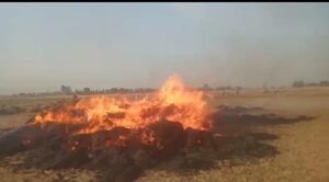 बदायूँ – ब्लॉक क्षेत्र म्याऊ के गांव ग्योति धर्मपुर में गेहूं निकालने के लिए, कटर पर धार लगाते समय गेहूं की लांक में आग लग गई