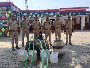 बस्ती। पुलिस अधीक्षक बस्ती गोपाल कृष्ण चौधरी के आदेश के क्रम मे जनपद बस्ती मे अपराध एवं अपराधियो व अबैध शराब निष्कर्षण व परिवहन के विरुद्ध चलाये जा रहे अभियान के तहत अपर पुलिस अधीक्षक बस्ती दीपेन्द्रनाथ चौधरी के निर्देश व क्षेत्राधिकारी हरैया शेषमणि उपाध्याय के पर्यवेक्षण मे थाना छावनी पुलिस टीम द्वारा थाना क्षेत्र के बघानाला मे माझा क्षेत्र से अपायकर अपमिश्रित अबैध शराब बनाने वाले नफर अभियुक्त राम बहादुर निषाद पुत्र रामकिशन ग्राम राजघाट थाना रामजन्म भूमि जनपद अयोध्या उम्र करीब 35 वर्ष मय माल 70 लीटर कच्ची शराब अपमिश्रित व शराब बनाने के उपकरण 900 ग्राम यूरिया व 400 ग्राम नौसादर के साथ गिरफ्तार, अभियुक्त के विरुद्ध विधिक कार्यवाही करते हुए माननीय न्यायालय रवाना किया गया। बताते चले थाना छावनी की पुलिस टीम द्वारा देखभाल क्षेत्र अबैध शराब के अपमिश्रण व निष्कर्षण एवं विक्रय व परिवहन पर प्रभावी रोकथाम हेतु थाना क्षेत्र सरयू नदी माझा क्षेत्र में अंकुश लगाने के क्रम में भ्रमणशील थे कि सूचना मिला कि बाघानाला के माझा क्षेत्र में एक भट्ठी पर कच्ची शराब बनाई जा रही है यदि जल्दी किया जाय तो पकड़ा जा सकता है मुखबीर को साथ लेकर उसके द्वारा बताये गये स्थान पर पहुचा गया तो बताया कि वही छप्पर के पास भट्ठी पर शराब बनायी जा रही है हम पुलिस वाले एक बारगी दबिश देकर शराब बना रहे व्यक्ति को पकड़ लिया गया पकड़े गये व्यक्ति से नाम पता पूछा गया तो अपना नाम राम बहादुर निषाद पुत्र रामकिशन ग्राम राजघाट थाना रामजन्म भूमि जनपद अयोध्या उम्र करीब 35 वर्ष । बाद गिरफ्तार अभियुक्त के विरुद्ध थाना स्थानीय पर मुकदमा EX.ACT व 272 IPC पंजीकृत किया गया गिरफ्तार अभियुक्त के विरुद्ध विधिक कार्यवाही कर माननीय न्यायालय रवाना किया गया। गिरफ्तार करने वाली पुलिस टीम में थानाध्यक्ष दुर्गेश कुमार पाण्डेय, उ0नि0 राजीव सिंह, उ0नि0 गंगा यादव, हे0का0 विक्रान्त यादव, का0 विरेन्द्र सिंह यादव थाना छावनी जनपद बस्ती आदि शामिल रहे।