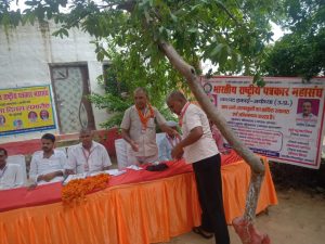 खबर मिल्कीपुर क्षेत्र के कुमारगंज से है जहां पर भारतीय राष्ट्रीय पत्रकार महासंघ द्वारा 24 वा सन स्थापना दिवस समारोह का हुआ आयोजन समारोह में वृक्षारोपण कर पत्रकार वा छात्राओं को किया गया सम्मानित आप को बता दें जनपद अयोध्या मिल्कीपुर क्षेत्र के कुमारगंज भारतीय राष्ट्रीय पत्रकार महासंघ अयोध्या इकाई द्वारा 24 वा स्थापना दिवस समारोह रविवार को बलदेव स्मारक इंटर कॉलेज अकमा कुमारगंज में हर्षोल्लास के साथ मनाया गया मुख्य अतिथि राष्ट्रीय उपाध्यक्ष अनंतराम पांडे विशिष्ट अतिथि विद्यालय के प्रबंधक अरुण कुमार सिंह जिला संरक्षक धर्मपाल सिंह जिला वरिष्ठ उपाध्यक्ष राम कल्प पांडे रहे अध्यक्षता जिला अध्यक्ष सूर्य कुमार मिश्र व तहसील अध्यक्ष मिल्कीपुर ओंकार मिश्र ने तथा संचालन वरिष्ठ पत्रकार देव कुमार पांडे ने किया कार्यक्रम की शुरुआत मां वीणा वादिनी के चित्र पर माल्यार्पण धूप दीप के साथ प्रारंभ हुआ सरस्वती वंदना कवि गुरु प्रसाद त्रिपाठी घनश्याम ने किया ।अतिथियों के स्वागत के उपरांत 11 फलदार वृक्षों का वृक्षारोपण किया गया विद्यालय के इंटर मीडिएट कि 3 छात्राओं एवं हाई स्कूल की दो छात्राओं को 92 प्रतिशत अंक पाकर विद्यालय का नाम रोशन किया है जिसके लिए उन्हें सम्मानित किया गया । कवि श्री कृष्ण द्विवेदी अज्ञान गुरुप्रसाद त्रिपाठी घनश्याम बल्दीराय से चलकर आए कर्म राज शर्मा तुकांत ने अपनी अपनी रचनाएं पढ़कर सबको मंत्रमुग्ध कर दिया ।एवं सुधीर कुमार मिश्र एडवोकेट ने हास्य कविता सुना कर सभी को लोटपोट कर दिया मुख्य अतिथि राष्ट्रीय उपाध्यक्ष अनंतराम पांडे ने अपने संबोधन में कहा कि आज से 24 वर्ष पहले महासंघ की स्थापना 15 जुलाई 2000 को की गई थी वह आज 14 प्रदेशों में अपनी इकाइयां गठित करके पत्रकार हितों के लिए कृत संकल्पित है।