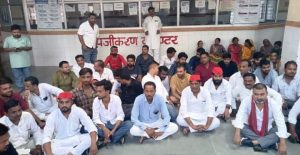 कैली में बदहाली व लापरवाही के खिलाफ सपा विधायक महेन्द्र ने कैली अस्पताल में दिया धरना