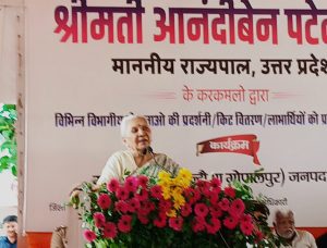 राज्यपाल आनंदी बेन पटेल बस्ती के लेदवा गांव में विशाल सभा को संबोधित किया ।