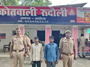 अयोध्या – वरिष्ठ पुलिस अधीक्षक राजकरन नय्यर जनपद-अयोध्या द्वारा अपराध नियंत्रण एवं अपराधियों के विरूद्ध चलाये जा रहे अभियान के अन्तर्गत एवं पुलिस अधीक्षक ग्रामीण अतुल कुमार सोनकर के निर्देशन तथा क्षेत्राधिकारी रूदौली सत्येंद्र भूषण तिवारी के कुशल पर्यवेक्षण में दिनांक 22.09.2023 को वादी की लिखित तहरीरी सूचना पर पंजीकृत मु0अ0सं0 481/2023 धारा 376D A/506 आईपीसी व 5(g)/6 पाक्सो एक्ट में नामजद अभियुक्त 1.मिटरू पुत्र सुन्दरलाल 2.लेखराज पुत्र रामसागर निवासीगण ग्राम फिरोजपुर पवारान को0रूदौली जनपद अयोध्या की गिरफ्तारी हेतु इसके मिलने सम्भावित ,थानों पर लगातार दबिश दी गई । अभियुक्त गिरफ्तारी के डर से इधर-उधर चला गया था । प्रभारी निरीक्षक थाना को0 रुदौली मय पुलिस टीम उसके मिलने सम्भावित स्थानों पर लगातार दबिश देते रही । उसी क्रम में आज दिनांक 23.09.2023 प्रभारी निरीक्षक थाना को0 रुदौली मय पुलिस टीम के साथ खैरनपुर के पास मामूर थे कि जरिये मुखबिर खास सूचना मिलने पर प्रभारी निरीक्षक थाना को0रुदौली मय पुलिस टीम के साथ मय मुखबिर के कूड़ा सादात तिराहे के पास पहुँचे तथा मुखबिर द्वारा बताये गये व्यक्तियों को पकड लिया गया व पकडे गये व्यक्तियों से नाम पता पूछा गया तो उन्होने अपना नाम क्रमशः 1. मिटरू उर्फ मुकेश कुमार रावत पुत्र सुन्दर लाल नि0 ग्राम फिरोजपुर पवारान थाना को0 रूदौली जनपद अयोध्या 2. लेखराज पुत्र रामसागर नि0 ग्राम फिरोजपुर पवारान थाना को0 रूदौली जनपद अयोध्या बताया उपरोक्त अभि0गण को गिरफ्तार करने में सफलता प्राप्त की गयी है ।