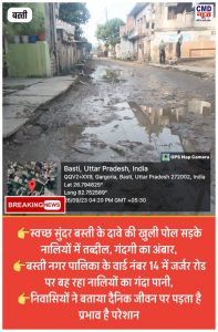 बस्ती नगर पालिका के वार्ड नंबर 14 में, जर्जर रोड पर बह रहे नालियों के गंदे पानी के कारण, सड़कों पर निकलना हुआ दुश्वार हो गया है। इस खराब सड़क के प्रतिदिन हो रहे नाली के पानी से हजारों लोगों का आवागमन होता है, जिससे स्थानीय वार्डों में गंदा पानी इकट्ठा हो रहा है, जो संक्रामक बीमारियों के फैलने की संभावना बढ़ा रहा है। इस समस्या का समाधान हेतु आवश्यक कदम उठाने की आवश्यकता है, स्थानीय लोगो ने बताया इस समस्या से दैनिक जीवन मे प्रभाव हो रहा है।
