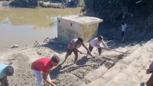 रामसनेही घाट, बाराबंकी। 2 अक्टूबर गांधी जयंती के उपलक्ष्य में देश के प्रधानमंत्री नरेंद्र मोदी के जन्मदिन पर आयोजित सेवा पखवाड़ा अंतर्गत जनपद बाराबंकी के तहसील रामसनेही घाट के कल्याणी नदी स्थित बुढ़वा बाबा मंदिर पर राज्यमंत्री सतीश शर्मा के निर्देशन में भाजपा कार्यकर्ताओं द्वारा स्वच्छता अभियान चलाया गया। राज्यमंत्री प्रतिनिधि प्रदीप द्विवेदी के नेतृत्व में भाजपा कार्यकर्ताओं ने मंदिर परिसर की साफ – सफाई करने के उपरांत कल्याणी तट पर स्थित निर्मित घाट की भी सफाई की और लोगों ने जल संरक्षण की भी शपथ ली। प्रदीप द्विवेदी ने कहा कि स्वच्छता में ईश्वर का वास होता है। भारत के प्रधानमंत्री हम सबके संरक्षक नरेंद्र मोदी का मिशन स्वच्छ भारत श्रेष्ठ भारत को हम सभी को मिलकर साकार करना है। इस अवसर पर जिला उपाध्यक्ष पवन सिंह रिंकू, मंडल अध्यक्ष विवेक तिवारी, ब्लॉक प्रमुख चंद्र शेखर वर्मा , कमलेश वर्मा , महामंत्री नीरज सिंह, प्रदीप सिंह , राजीव मिश्रा , मधुकर तिवारी, आशीष सिंह,भैरव रावत, विवेक सिंह, आशीष मिश्रा व संजय निषाद सहित भाजपा के तमाम कार्यकर्ता मौजूद रहे।