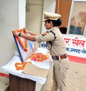 दिनांक -02-10-2023 गोंडा राष्ट्रपिता महात्मा गांधी व पूर्व प्रधानमंत्री लाल बहादुर शास्त्री जी की जयंती के शुभ अवसर पर पुलिस अधीक्षक श्री अंकित मित्तल ने रिजर्व पुलिस लाइन गोंडा में राष्ट्रपिता महात्मा गाँधी व लाल बहादुर शास्त्री जी के चित्र पर पुष्प माल्यार्पण कर, स्वच्छता व सत्यनिष्ठा के साथ राष्ट्र की एकता व अखंडता की शपथ दिलाई गयी तथा उनके विचारों का अनुकरण करने व उनके आदर्शो पर चलने के बारे में बताया गया। साथ ही उनके जीवन से जुड़ी कुछ रोचक बातों के बारे में तथा यह भी बताया कि गांधी जी कैसे देश के राष्ट्रपिता बन गए और हर भारतीय क्यों उन्हें बापू कहने लगे। तत्पश्चात पुलिस अधीक्षक ने 14 सफाई मित्र को पुरस्कृत किया गया। इसी तरह अपर पुलिस अधीक्षक गोंडा श्री शिवराज ने पुलिस अधीक्षक कार्यालय में व जनपद के समस्त क्षेत्राधिकारियो/थाना प्रभारियों ने अपने-अपने कार्यालयों/थानों पर राष्ट्रपिता महात्मा गाँधी व लाल बहादुर शास्त्री जी के चित्र पर पुष्प माल्यार्पण कर, स्वच्छता व सत्यनिष्ठा के साथ राष्ट्र की एकता व अखंडता की शपथ दिलाई गयी तथा उनके विचारों का अनुकरण करने व उनके आदर्शो पर चलने के बारे में बताया गया।