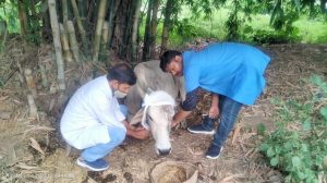 बेजुबानों के आवाज बने इंसान घायल गौवंश का इलाज करने पहुंची 1962 की टीम