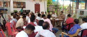 बस्ती। पुलिस अधीक्षक गोपाल कृष्ण चौधरी के आदेश के क्रम में अपर पुलिस अधीक्षक दीपेंद्र नाथ चौधरी के कुशल पर्यवेक्षण में दिनांक 13.10.2023 थाना स्थानीय पर प्रभारी निरीक्षक शैलेश कुमार सिंह द्वारा पीस कमेटी की मीटिंग आहूत की गई जिसमें थाना क्षेत्र अंतर्गत श्री दुर्गा प्रतिमा स्थापपित करने वाले, धर्मगुरु,पत्रकार बंधु,ग्राम प्रधान, शांति समिति के अध्यक्ष व अन्य संभ्रांत व्यक्ति उक्त गोष्ठी में प्रतिभाग किए जिन्हें आगामी त्यौहार श्री दुर्गा पूजा व दशहरा जिसके संबंध में आयोजको को निर्देशित किया गया । व त्योहार को सकुशल संपन्न कराने हेतु उच्चाधिकारियों द्वारा प्राप्त आवश्यक आदेशों व निर्देशों से श्री दुर्गा पूजा पंडाल 03 मीटर से कम उचाई का न लगाए,पंडाल चारो तरफ से खुला होना चाहिए,पंडाल बिजली के नीचे नहीं होना चाहिए,बाहर निकलने का गेट 05 मीटर से कम न हो,इमरजेंसी लाइट की व्यवस्था होनी चाहिए,पंडाल बनाने में सिंथेटिक सामग्री से बने कपडे या रस्सी का प्रयोग न करे,आपात काल के लिए अलग रास्ते की व्यवस्था हो,पंडाल 45 मीटर से अधिक नहीं होना चाहिए,पंडाल के अन्दर व आसपास धुम्रपान न करे,पंडालो में सीसीटीवी कैमरों की क्यावास्था की जाए, ध्वनि विस्तारक यंत्रो का प्रयोग मा0 उच्चतम न्यायालय के आदेशो निर्देशों के अनुरूप करे,पंडाल में अग्नि से सुरक्षा हेतु पर्याप्त पानी व बालू होना चाहिए,अग्निशन सेवा,पुलिस सेवा व थाने के CUG नं0-101,112 व 9454403123 आदि से अवगत कराया गया। व त्योहार शांति पूर्वक सकुशल संपन्न कराने हेतु सभी से अपील की गई।