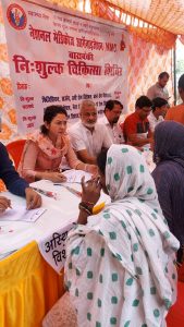 बाराबंकी। नेशनल मेडिकोज ऑर्गेनाइजेशन( एन एम ओ), सेवा भारती और राष्ट्रीय स्वयंसेवक संघ के संयुक्त तत्वाधान में आज रविवार को एक नि:शुल्क चिकित्सा स्वास्थ्य शिविर का आयोजन नगर के लखपेड़ा बाग मोहल्ले के श्री दुर्गा मंदिर में संपन्न हुआ। शिविर में दूर-दूर से आए 417 मरीजों ने अपना रजिस्ट्रेशन करवा कर स्वास्थ्य परीक्षण कराया। स्वास्थ्य परीक्षण के उपरान्त मरीजों को निःशुल्क दवाएं वितरित की गई।