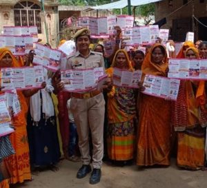 महिलाओं/बालिकाओं से वार्ता कर ऑडियो/वीडियो/पंपलेट के माध्यम से विभिन्न हेल्पलाइन नम्बरों एवं महिला केन्द्रित विभिन्न सरकारी योजनाओं की जानकारी देते हुए किया गया जागरुक