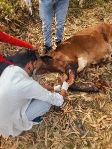 1962 की टीम ने निराश्रित घायल गौवंश का किया उपचार, लोगों ने की प्रशंसा
