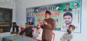 दिनांक 04-12-2023 गोंडा। मुजाहिदीन अलग-अलग तरीकों से देश की आजादी के लिए लड़ रहे थे। मुजाहिदीन के एक समूह ने 1915 में अफगानिस्तान में भारत की अस्थायी सरकार की स्थापना की थी जिसके प्रधानमंत्री मौलाना बरकत उल्लाह भोपाली और राष्ट्रपति राजा महेंद्र प्रताप सिंह चुने गए थे।आज देश के अंतरिम सरकार के पहले राष्ट्रपति की जयंती के अवसर पर सर सैयद गर्ल्स कॉलेज में ऑल इंडिया मुस्लिम मजलिस के जिला अध्यक्ष सैयद महमूद आकिफ एडवोकेट की अध्यक्षता में एक सेमिनार आयोजित किया गया, जिसमें देश की आजादी में महेंद्र प्रताप सिंह जी के योगदान पर चर्चा की गई। वक्ताओं ने प्रकाश डाला और अपने विचार व्यक्त किए और कहा कि अफसोस के साथ कहना पड़ रहा है कि देश की आजादी के 75 साल बाद जहां एक ओर अमृत महोत्सव मनाया जा रहा है, वहीं दूसरी ओर इन महान शहीदों के बलिदान को सरकारों ने पूरी तरह से नजरअंदाज कर दिया है। सेमिनार में देश की आजादी से पहले स्थापित होने वाली अंतरिम सरकार के पहले राष्ट्रपति और पहले प्रधानमंत्री के बलिदान के बारे में जनता को जागरूक करने का निर्णय लिया गया.महत्वपूर्ण वक्ताओं में ऑल इंडिया मुस्लिम मजलिस के कार्यवाहक राष्ट्रीय अध्यक्ष एडवोकेट वसी अहमद, प्रदेश अध्यक्ष एडवोकेट नदीम सिद्दीकी, राष्ट्रीय प्रवक्ता जुनैद अहमद, इंजीनियर जियाउल इस्लाम उर्फ जियाभाई, हाफिज मुहम्मद यूसुफ, प्रदेश सचिव बाबू इसराइल और सैफुल इस्लाम आदि के नाम शामिल है। इस मौके पर पार्टी के नगर अध्यक्ष हाफिज सलाउद्दीन, मंसूर, शराफतुल्लाह, पूर्व वार्ड सदस्य हाजी शोएबुद्दीन, खुर्शीद आलम अज़हरी, फिरोज नेता, शादाब खान, मोहम्मद सगीर कुरेशी, नूर मोहम्मद, आजम राईनी और शोएब अख्तर मौजूद रहे.