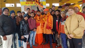 अयोध्या धाम को पैदल यात्रा की हुंकार भरे दो राम भक्त नानपारा से 10 जनवरी को सुबह 9 बजे अयोध्या धाम पदयात्रा को निकले दो राम भक्त रोहित यादव व अभिषेक शुक्ला निवासी नानपारा का नानपारा के लोगों ने पुष्प वर्षा माल्यार्पण कर व जय श्री राम के नारों के साथ ढोल बाजे के साथ अयोध्या धाम के लिए रवाना किया,बाबा विश्वनाथ मंदिर नानपारा में पूजा करके कालीकुण्डा मंदिर पहुँच कर आशीर्वाद लिया नानपारा व्यापार मंडल के अध्यक्ष अब्दुल मुशीर सेठ ने दो राम भक्तों को साल ओढ़ाकर कर व पुष्प देकर उत्सवर्धन करते हिंदू मुस्लिम एकता का परिचय दिया, आरएसएस नगर कार्यवाह आनन्द श्रीवास्तव व पूर्व जिला पंचायत सदस्य पंकज जायसवाल ने भी उत्साह बढ़ाया। अयोध्या धाम पैदल जा रहे दोनों भक्तों ने बताया कि अधिक से अधिक चलना है रात में भी चलना है तीन से चार घंटे का विश्राम मंदिर पर चौबीस घण्टे में लेंगे प्रयास है कि पंद्रह जनवरी से पहले पहुँच जाए, सुनसान रास्तो ने सुरक्षा की बात कही |इस मौके पर नानपारा भाजपा युवा नेता सुशील त्रिपाठी, विवेक श्रीवास्तव,विकास गुप्ता,तीरथ राम साहू,राकेश वर्मा बबलू निषाद, रामलीला कमेटी के अध्यक्ष चिरंजी लाल यज्ञ सैनी शिवम गुप्ता, विशाल तिवारी,राहुल गुप्ता,शिवम,शुभम गुड्डू सहित नानपारा के तमाम भक्तजनों ने अयोध्या पैदल यात्रा करने वाले युवाओं को रवाना किया और टोल टैक्स गुलालपुरवा नानपारा तक जय श्री राम के जयकारों के साथ भेजने गए।