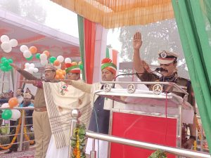 तत्पश्चात पुलिस परेड ग्राउंड में आयोजित कार्यक्रम में मुख्य अतिथि केंद्रीय मंत्री बीएल वर्मा ने वरिष्ठ पुलिस अधीक्षक आलोक प्रियदर्शी के साथ झण्डा फहराया कर परेड की सलामी ली। भारत को एक संपूर्ण प्रभुत्व संपन्न समाजवादी पंथ निरपेक्ष लोकतंत्रात्मक गणराज्य बनाने का संकल्प लिया। यहां देशभक्ति से सम्बंधित बच्चों द्वारा रंगारंग कार्यक्रम पेश किए गए।