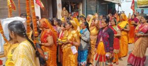 बहराइच- नानपारा में निकाली गई सतरूपा अष्टभुजा दुर्गा मंदिर में संकट मोचन हनुमान मंदिर प्राण प्रतिष्ठा हेतु कलश यात्रा