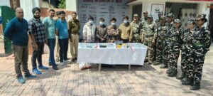 दिनांक 27/03/24 को समय लगभग 08:50 बजे, 42वीं वाहिनी सशस्त्र सीमा बल, बहराइच-। के उप कमांडेंट प्रचालन अनिल कुमार यादव के निर्देशन में सीमा चौकी रुपैडिहा एवं हिमाचल प्रदेश पुलिस के कार्मिकों द्वारा रुपैडिहा चेक पोस्ट पर संयुक्त जाँच एवं तालाशी के दौरान सिरमौर जिले (हिमाचल प्रदेश) में हुई एक चोरी के मामले में शामिल 04 नेपाली व्यक्तियों को चोरी किये गये 39 स्मार्ट फोन, 01स्मार्ट वॉच और 01 टैब के साथ धर दबोचा प्राप्त जानकारी के अनुसार दिनांक 23/24-03-24 की मध्य रात्रि को राजगढ़ बाजार हिमाचल प्रदेश स्थित अरविन्द इलेक्ट्रॉनिक्स दुकान के शटर के तालों को तोड़ कर बड़े पैमाने पर चोरों द्वारा कीमती मोबाइल व अन्य इलेक्ट्रॉनिक सामानों की चोरी की गयी थी। इस संदर्भ में आई पी सी की धारा 380 और 457 के तहत दिनांक 25/03/24 को थाना राजगढ़ हिमाचल प्रदेश में एफ आई आर दर्ज करायी गयी थी। उक्त सन्दर्भ में दिनांक 27/03/24 को लगभग 0600 बजे हिमाचल प्रदेश पुलिस की टीम ने समवाय कमांडर सीमा चौकी रुपैडिहा से चोरी में संलिप्त अभियुक्तों की गिरफ्तारी हेतु संपर्क किया। हिमाचल प्रदेश पुलिस के आसूचना के आधार पर जाल बिछाकर सशस्त्र सीमा बल व हिमाचल प्रदेश पुलिस के संयुक्त ऑपरेशन में सभी 04 वांछित अभियुक्तों को चोरी किये गए सामान के साथ रुपैडिहा चेक पोस्ट पर धर दबोचा गया। सभी आरोपियों ने स्वीकार किया कि उन्होंने राजगढ़, सिरमौर (हिमाचल प्रदेश) की एक मोबाइल दुकान से इलेक्ट्रॉनिक सामान चुराया था और इसे लेकर नेपाल जाने के फिराक में थे। तत्पश्चात पकड़े गए व्यक्तियों को आगे की कानूनी कार्रवाई के लिए हिमाचल प्रदेश पुलिस को सौंप दिया गया। 42वीं वाहिनी सशस्त्र सीमा बल बहराइच-। के कार्यवाहक कमांडेंट श्री पार्थ सारथी रॉय ने बताया कि सशस्त्र सीमा बल द्वारा भारत नेपाल सीमा पर आगामी लोकसभा चुनाव के मद्देनजर लगातार सघन अभियान चलाया जा रहा है तथा सभी सहयोगी संस्थाओं के साथ आपसी समन्वय स्थापित कर चाक चौबंद सुरक्षा सुनिश्चित की जा रही है। इस हेतु हमारे जवान 24 x7 अपने कर्तव्यों का निर्वहन पूरी ईमानदारी से कर रहे हैं ।