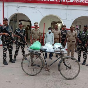 दिनांक 29.03.2024 को 42वीं वाहिनी सशस्त्र सीमा बल बहराइच- के उप कमान्डेंट प्रचालन श्री अनिल कुमार यादव के निर्देशन में आगामी लोकसभा चुनाव के मद्देनजर सीमा चौकी शिवपुरा के कार्मिकों द्वारा उ०प्र० पुलिस के साथ संयुक्त गश्त निकाली गई। गश्त के दौरान आसूचना के आधार पर सीमा स्तम्भ संख्या 654/13 के समीप 100 मीटर भारत की ओर लगभग 18:15 बजे एक युवक नेपाल से भारत की तरफ आते हुए देखा गया जो की साइकिल पर प्लास्टिक की तीन बोरी को लेकर कर आ रहा था। गश्ती दल ने युवक के पास आने का इंतजार किया और पास आते ही चारों तरफ से घेर कर पकड़ लिया, पकड़े गये व्यक्ति से नाम पूछने पर उसने अपना नाम रामधिरज सोनकर उर्फ़ पांचू उम्र 47 वर्ष पुत्र छेदी सोनकर, बक्शी गाँव, थाना-रुपैडिहा, जनपद-बहराइच तथा प्लास्टिक की बोरी में नेपाली कच्ची शराब होने के विषय में बताया। मै नेपाल से सस्ते दामो में कच्ची शराब खरीदकर अपने क्षेत्र में महंगे दामो में बेचकर अपना जीविको-पार्जन करता हूँ, मौके पर उपस्थित बल कर्मियों द्वारा नियमानुसार पकड़े गये व्यक्ति की जमा तलाशी के दौरान बोरी में कुल 112 लीटर नेपाली कच्ची शराब बरामद हुआ, बरामद 112 लीटर कच्ची शराब व अभियुक्त को माननीय सर्वोच्च न्यायलय व मानवाधिकार के निर्देशों का पालन करते हुए गिरफ्तार किया गया तथा सभी आवश्यक औपचारिकता विधिवत रूप से पूर्ण करने के उपरांत अग्रिम कार्यवाही हेतु थाना रुपैडिहा जनपद-बहराइच के सुपुर्द किया गया। गश्ती दल में एसएसबी के मुख्य आरक्षी- सुभाष कुमार, गुलाम रशूल, नन्द किशोर साह एवं अन्य 03 कार्मिक तथा उत्तर प्रदेश पुलिस के 06कार्मिक शामिल रहे। 42वीं वाहिनी सशस्त्र सीमा बल बहराइच-। के कार्यवाहक कमांडेंट श्री पार्थ सारथी रॉय ने बताया कि आगामी लोकसभा चुनाव को मध्य नजर रखते हुए सीमा पर चौकसी बढ़ा दी गई है हमारे जवानो द्वारा भारत नेपाल सीमा पर लगातार सघन अभियान चलाया जा रहा है जिसमे जवान अपने कर्तव्यों का निर्वहन पूरी ईमानदारी से कर रहे हैं तथा अवैध नशीले पदार्थों की तस्करी पर पूर्ण रूप से लगाम लगाने के लिए सीमा पर 24 घंटे तत्पर हैं।