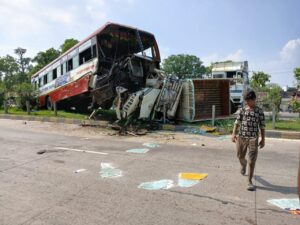 15/7/2024 अयोध्या – रुदौली कोतवाली अंतर्गत भेलसर चौकी क्षेत्र लखनऊ से अयोध्या जा रही रोडवेज बस और पिकप की आमने सामने जोरदार टक्कर हो गई जिसमे रोडवेज बस चालक बुरी तरह से फंसा हुआ था वही दोनो पिकप के चालक भी बुरी तरह से गाड़ी में फंसे हुए थे सूचना मिलते ही घटना स्थल पर पहुंचे भेलसर चौकी प्रभारी मनीष चतुर्वेदी अपने हमराहियो में गोविंद यादव दुर्गेश यादव के सभी घायलों को काफी मशक्कत के बाद निकलवाकर इजाज हेतु जिला अस्पताल भिजवाया गया। मिली जानकारी के अनुसार सोमवार दोपहर करीब तीन बजे अयोध्या से लखनऊ की ओर जा रही विपरीत दिशा में दो पिकप को लखनऊ से अयोध्या को जा रही रोडवेज बस की भेलसर ओवर ब्रिज के उतरते ही चंद्र दूरी पर आमने सामने जोरदार टक्कर हो गई,टक्कर इतना भयंकर था कि दोनो पिकप सहित रोडवेज बस के परचक्के उड़ गए। टक्कर में दोनो पिकप बीच डिवाइडर से टकराते हुए पलट गई प्रत्यक्ष दर्शनों की माने तो दोनों पिकअप के ड्राइवर की हालत बेहद नाजुक बनी हुई है वही चौकी प्रभारी मनीष चतुर्वेदी ने बताया की विपरीत दिशा से दोनों पिकअप आ रही थी कि भेलसर ओवर ब्रिज से कुछ दूरी पर हैदरगढ़ डिपो की रोडवेज बस की आमने-सामने टक्कर हो गई है सभी घायलों को इलाज हेतु जिला चिकित्सालय भिजवाया गया है। गाड़ियों को क्रेन की मदद से रोड से खाली करवाया गया है यातायात सुचारू रूप से चालू है।