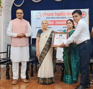 17/7/2024 अयोध्या – इंडियन रेड क्रॉस सोसायटी उत्तर प्रदेश द्वारा प्रदेश स्तरीय A G M राज भवन लखनऊ बैठक में अयोध्या मंडल प्रभारी डॉक्टर अजय मोहन द्वारा नाम अनुमोदन उपरांत अयोध्या जिले के इंडियन रेड क्रॉस सोसाइटी रुदौली के निवासी आजीवन सदस्य श्रवण कुमार गुप्ता जी को उत्तर प्रदेश की माननीय राज्यपाल महोदया व रेड क्रॉस सोसायटी की अध्यक्ष आनंदीबेन पटेल द्वारा जिले में उत्कृष्ट सेवा सम्मान 2023 प्रदान किया गया।