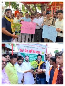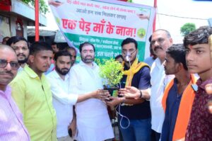 रामसनेहीघाट,बाराबंकी। शनिवार जनपद बाराबंकी के नगर पंचायत रामसनेही घाट में आयोजित एक पेड़ मां के नाम कार्यक्रम में ग्रीन गैंग के सदस्य पर्यावरण प्रेमी आशीष सिंह पेड़ से जुड़े हुए ऑक्सीजन मास्क लगाकर लोगों को पर्यावरण संरक्षण का संदेश दिया। मंत्री सतीश शर्मा ने आशीष सिंह की हरियाली के प्रति चलाए जा रहे इस मुहिम की जमकर प्रशंसा की। आशीष सिंह ने बताया मेरा पेड़-पौधे लेकर ऑक्सीजन मास्क लगाकर घूमने का कारण यह है कि सभी लोग यह प्रण लें कि पर्यावरण को बचाएंगें।