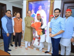 अयोध्या – महाराष्ट्र के पूर्व सीएम उद्धव ठाकरे के आवास मातोश्री पर हुआ अयोध्या के सांसद का स्वागत
