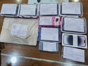 भारत-नेपाल अन्तर्राष्ट्रीय चेकपोस्ट रुपईडीहा पर एसएसबी व थाना रुपईडीहा पुलिस की संयुक्त कार्यवाही में साइबर ठग गिरोह के 04 नफर अभियुक्त 1. मो0 आरिफ पुत्र मुजीब अहमद निवासी शेखदहीर थाना को० देहात जनपद बहराइच 2. फैज खान पुत्र अज्जन खान नि० नाजिरपुरा थाना सिटी कोतवाली जनपद बहराइच 3. मो० असरफ पुत्र सलीम नि० बंजारी मोड़ सिटी कोतवाली बहराइच, 4. उसामा बेग पुत्र अकलीम बेग नि० फखरपुर बहराइच को महिन्द्रा थार वाहन UP40 BC7374 से नेपाल राष्ट्र जाते समय चेकिंग के दौरान 01 अदद एचपी लैपटाप, 13 अदद मोबाइल फोन, फेक आईडी पर प्राप्त 49 अदद सिम कार्ड, रु0 46,320 भारतीय मुद्रा, 10 अदद विभिन्न बैंकों के क्रेडिट/ डेबिट कार्ड, पावरबैंक, चार्जर व इयरबड आदि के साथ गिरफ्तार किया गया । उल्लेखनीय बात प्रकाश में आई कि उक्त अभियुक्तगण टेलीग्राम के माध्यम से फर्जी खाते खुलवाकर अपना मोबाइल नम्बर लिंक कराते थे तथा गेमिंग ऐप Rummy, Octa Fx आदि पर पैसे जीतने वाले लोगों को टेलीग्राम ग्रुप/ चैनलों के माध्यम से सम्पर्क कर उन्हें QR Code उपलब्ध कराते थे जिसमें प्रतिदिन 50 हजार से 01 लाख तक की धनराशि मंगवाते थे और इस कार्य के लिये अभियुक्तगण प्रति खाता 05 से 10 हजार रुपये लेते थे।