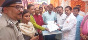 जनप्रतिनिधियों व डीएम ने शहीद के परिजनों को सौंपे 50 लाख रुपए के चेक
