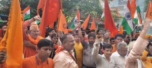 नानपारा/ बहराइच- बांग्लादेश में हिन्दू अल्पसंख्यकों पर अत्याचार की घटनाएं आए दिन हो रही हैं मंदिरों को निशाना बनाया जा रहा है ऐसी खबरें आए दिन मीडिया में आती हैं इसी के विरोध में हिंदू रक्षा समिति व अन्य हिन्दू संगठनों के तत्वाधान में एक जूलूस सआदत इंटर कॉलेज से निकाला गया जिसमें बांग्लादेश मुर्दाबाद पाकिस्तान मुर्दाबाद इस्लामिक आतंकवाद मुर्दाबाद के नारे लगाते हुए कार्यकर्ता एसडीएम कोर्ट पहुंचे और यहां पर जमकर नारेबाजी की इसके बाद अपनी मांगों से संबंधित प्रधानमंत्री को संबोधित ज्ञापन तहसीलदार नानपारा अजय कुमार को सोपा ।