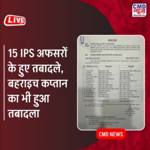 लखनऊ, 22 दिसंबर: उत्तर प्रदेश सरकार ने पुलिस महकमे में बड़ा फेरबदल करते हुए 15 आईपीएस अफसरों के तबादले का आदेश जारी किया है। इस तबादला सूची में बहराइच की पुलिस अधीक्षक (एसपी) वृंदा शुक्ला का नाम भी शामिल है। उन्हें महिला एवं बाल सुरक्षा संगठन, लखनऊ में नियुक्त किया गया है। उनकी जगह आईपीएस राम नयन सिंह को बहराइच का नया पुलिस अधीक्षक बनाया गया है।