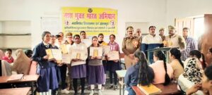 मद्य निषेध विभाग अयोध्या शुभांकर वेल्फेयर सोसायटी एवं के संयुक्त तत्वावधान में श्री राम जानकी इण्टर कालेज पटरंगा अयोध्या में नशा मुक्ति जागरूकता अभियान के अंतर्गत निबंध प्रतियोगिता वा पोस्टर प्रतियोगिता का आयोजन किया गया। मुख्य अतिथि के रूप में उपस्थित प्रभारी निरीक्षक शाशि कान्त यादव एव्ं प्रधानाचार्य केशव राम यादव ने दीप प्रज्ज्वलित कर कार्यक्रम का शुभारंभ किया। कार्यक्रम को सम्बोधित करते हुए कहा कि मनुष्य अपना मित्र व शत्रु स्वयं है,आपकी सबसे अधिक आवश्यकता आपके परिवार की है जो आपको शिक्षित व सफल देखना चाहते हैं,आपके माँ बाप सच्चे हितैषी है आप सभी लोग उनके अनुभव का लाभ अपने जीवन मे जरूर ले नशा करने वाला व्यक्ति हर प्रकार से समाजिक तिरस्कार पाता है, आप सभी बच्चे भारत के भविष्य है आपको नशे से बचाना हम सब की जिम्मेदारी है। आज बाजार मे विभिन्न प्रकार के नशा आपको बर्बाद करने के लिए उपलब्ध है उनसे आपको हर सम्भव बचना है,मुख्य अतिथि ने कहा कि शुभांकर वेल्फेयर सोसायटी नशा मुक्ति जागरूकता अभियान के लिए विभिन्न क्षेत्रों में जागरूकता कार्यक्रम कर रहा है। मै कई वर्षो से सोसायटी के कार्यक्रम में उपस्थित होता रहा हूँ मै इस कार्य के लिये सोसाइटी के प्रबंधक रमेश कुमार यादव व पूरी सोसायटी परिवार को आशीर्वचन से अभिसिंचित करता हूँ। निबंध प्रतियोगिता में प्रथम स्थान आकांक्षा कक्षा 10,द्वितीय स्थान आंचल सैनी कक्षा 11, तृतीय स्थान सन्जना वर्मा कक्षा 11,चतुर्थ स्थान शिवांशी मौर्या पोस्टर प्रतियोगिता में प्रथम स्थान महिमा गुप्ता कक्षा 11, द्वितीय स्थान सौम्या पांडेय कक्षा 12, तृतीय स्थान पायल कक्षा 11,चतुर्थ स्थान नविता चौरसिया कक्षा 11 ने प्राप्त किया। मुख्य अतिथि शाशि कान्त यादव ने प्रतिभाग मे चयनित बच्चो को स्मृति चिन्ह व प्रमाण पत्र देकर सम्मानित किया। जिला मद्य निषेध अधिकारी सन्जना सिंह ने बच्चो को नशा न करने की शपथ दिलाई। सोसायटी के अध्यक्ष मुकेश कुमार यादव ने कहा कि हमारी सोसायटी नशा उन्मूलन व पर्यावरण संरक्षण पर पर लगातार कार्यक्रम करती रहती है इस अवसर पर कोषाध्यक्ष उमाकान्त वर्मा व सदस्य अमर बहादुर, प्रेम कुमार, पुलिस विभाग से उप निरीक्षक प्रतीक्षा, राज कुमार यादव, सिपाही सुनील पटेल,अजय कुमार विद्यालय से प्रधानाचार्य केशव राम यादव शिक्षक कमलेश कुमार यादव, सुधीर गुप्ता, त्रिपाठी,अमलेश कुमार इत्यादि लोग उपस्थित रहे।