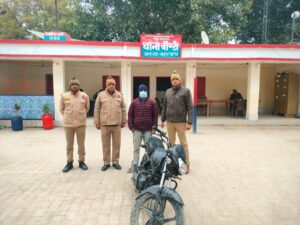 चेकिंग के दौरान चोरी की मोटरसाइकिल के साथ 01 अभियुक्त गिरफ्तार