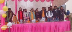 म्याऊं में क्षेत्र पंचायत की बैठक को संबोधित करते आंवला सांसद नीरज मौर्य व मचासीन अतिथिगण