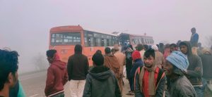 बहराइच: उत्तर प्रदेश परिवहन विभाग की 02 बस UP-40-T-9003 व UP- 40-T- 5185 आमने सामने से टकराई एक ड्राइवर की मौत