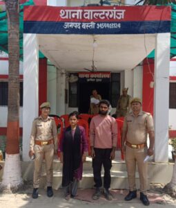 बस्ती जनपद के वाल्टरगंज पुलिस द्वारा थाना स्थानीय पर पंजीकृत मु0अ0सं0 165/24 धारा 406,420,506 भा0द0वि0 से सम्बन्धित अभियुक्त 1. अरविन्द कुमार पुत्र राधेश्याम 2. अभियुक्ता सोनी पत्नी अरविन्द कुमार निवासीगण तरैनी थाना गौर जनपद बस्ती हाल पता दक्षिण द्वारा गनेशपुर थाना वाल्टरगंज जनपद बस्ती जिनके विरूद्ध मा0 न्यायालय से दिनांक- 25.10.2024 को NBW तथा दिनांक- 28.01.205 को धारा 82 सीआरपीसी की आदेशिका जारी किया गया था। आदेशिका के क्रम में दिनांक- 31.10.2025 को अभियुक्त के घर पर मुनादी की कार्यवाही भी किया गया था। उसके बाद भी अभियुक्तगण बादस्तूर फरार चल रहे थे । आज दिनांक- 04.04.2025 को मुखबिर की सूचना पर मुड़घाट तिराहे से फुटहिया की ओर 100 मीटर आगे एक मकान के पास से समय करीब 11.05 बजे गिरफ्तार कर भेजा जेल