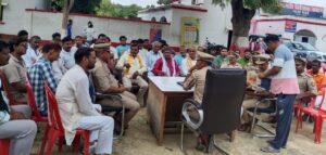 मवई अयोध्या। थाना मवई परिसर में शांति समिति की बैठक का आयोजन थाना प्रभारी मवई सुरेश कुमार पटेल की अध्यक्षता में किया गया। जिसमें आगामी मुहर्रम पर्व को लेकर उपस्थित लोगों से आगामी त्यौहारों की समीक्षा की गयी व पर्वों में शांति तथा सौहार्द कायम रखने की अपील की गई। इस अवसर पर थाना प्रभारी मवई ने जनता से आपसी सौहार्द के साथ त्योहार मनाने की अपील करते हुए कहा कि आगामी पर्वों को आपसी सद्भाव के साथ मनाएं। जिससे कानून व्यवस्था खराब न हो साथ ही कहा कि अराजक तत्वों पर पुलिस की निगरानी रहेगी व त्योहार में हुड़दंग फैलाने वालों पर पुलिस की नजर रहेगी। मौजूद कस्बे के ताजियादारों की समस्याओं व सुझाव को लेकर चर्चा की गयी। इस अवसर पर साफ-सफाई ,पेयजल व्यवस्था व बिजली व्यवस्था व रास्ते पर आने वाले पेड़ों के विषय में भी बात की गयी। थाना प्रभारी मवई ने कहा कि उक्त पर्वों पर किसी भी प्रकार की कोई नयी परम्परा शुरू नहीं की जायेगी व उक्त त्यौहार पारम्परिक तरीके से ही सम्पन्न होगा। इस अवसर मवई प्रधान अब्बास अली,प्रधान राम बरन,प्रधान दानबहादुर यादव,प्रधान अवधेश यादव,प्रधान दुर्गा प्रसाद रावत,आदि समस्त स्टाफ मौजूद रहा।