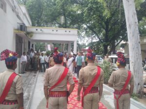 इससे पहले कलेक्ट्रेट आगमन पर मा0 मंत्री व अन्य जन प्रतिनिधियों का बुके देकर स्वागत किया गया तथा बैठक के उपरान्त मा0 मंत्री को स्मृति चिन्ह के रूप् में सीडीओ ने जिला प्रशासन की ओर से राम दरबार भेंट किया। पीडब्ल्यूडी गेस्ट हाउस आगमन पर जिलाधिकारी अवनीश राय ने मा0 मंत्री का बुके देकर स्वागत किया तथा मा0 मंत्री को गार्ड ऑफ ऑनर भी दिया गया।