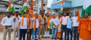 नानपारा (बहराइच)। स्वतंत्रता दिवस 15 अगस्त 2025 के अवसर पर हिंदू वाहिनी संगठन जिला बहराइच द्वारा नगर में विशाल तिरंगा यात्रा का आयोजन किया गया। यात्रा का शुभारंभ काली कुंडा मंदिर से हुआ, जो गोयल तिराहा, इमामगंज चौराहा, भारत मिलाप चौराहा, कतनिया तिराहा होते हुए शहीद स्मारक पर पुष्पांजलि अर्पित करने के बाद पुनः काली कुंडा मंदिर पर संपन्न हुई। कार्यक्रम का संचालन कार्यवाहक जिला अध्यक्ष नृगराज शर्मा ने किया, जबकि अध्यक्षता जिला अध्यक्ष भोला सोनी ने की। इस अवसर पर प्रदेश संगठन मंत्री कैलाश नाथ सोनी, प्रदेश उपाध्यक्ष विजय कुमार मिश्रा, क्षेत्रीय अध्यक्ष देवराज शरण पाठक, क्षेत्रीय महामंत्री कौशलेंद्र मिश्रा सहित संगठन के पदाधिकारी, भाजपा नगर अध्यक्ष श्रीमती रेखा पांडे, नगर के गणमान्य लोग और व्यापारी शामिल हुए। हजारों लोगों की मौजूदगी और पुलिस प्रशासन के सहयोग से कार्यक्रम सफलतापूर्वक संपन्न हुआ।