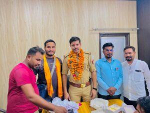 अहमदपुर,बाराबंकी। जनपद बाराबंकी के थाना जैदपुर अंतर्गत पुलिस चौकी अहमदपुर आलोक सिंह राजावत का क्षेत्रवासियों एवं पत्रकार बंधुओं द्वारा भव्य स्वागत किया गया। चौकी क्षेत्र के पूरे अमेठिया गांव की बिटिया प्रज्ञा द्वारा रोली चंदन लगाकर आलोक का अभिनंदन किया। जिले के रक्तमित्र और ग्रीन गैंग के जिला प्रभारी आशीष सिंह ने चौकी प्रभारी आलोक सिंह को क्षेत्र की विभिन्न विषयों की जानकारी से अवगत कराते हुए कहा कि हमारे क्षेत्र को युवा और कर्मठशील चौकी प्रभारी के रूप में कमान संभाली है जिससे क्षेत्र के युवाओं के लिए गर्व का विषय है ,साथ ही कानून व्यवस्था मजबूत और जिम्मेदार हाथों में है। वहीं चौकी प्रभारी आलोक सिंह ने कहा कि क्षेत्र की समस्याओं का निराकरण उनकी पहली प्राथमिकता होगी। आमजनमानस सीधे उनसे अपनी समस्या को लेकर बेहिचक रख सकती है,समय – समय पर जन संवाद के माध्यम से क्षेत्र की समस्याओं को हल किया जायेगा। सरकार की मंशा अनुरूप शोषित – पीड़ित – वंचित व सर्वसमाज के लोगों को न्याय दिलाना उनका कर्तव्य होगा। पत्रकार बंधुओं का आभार व्यक्त करते हुए उन्होंने कहा कि आप सभी लोकतंत्र के चौथे स्तम्भ है पुलिस और पत्रकार बंधुओं का आपसी सामंजस्य समाज का दर्पण है। इस अवसर पर लोगों द्वारा चौकी प्रभारी को अंगवस्त्र , फूलमाला व मुंह मीठा कराकर अपनी शुभकामनाएं भेंट की। इस दौरान मौके पर रक्तमित्र आशीष सिंह,अनिल कुमार, मो० इरफान ,दिग्विजय सिंह,संदीप शर्मा,संदीप रावत ,सुरेंद्र रावत, अमरेश रावत ,डॉ रवि सागर ,संदीप गौतम ,नवाज अंसारी,ज्ञान प्रकाश,जयकुमार,सनी रावत,धनंजय यादव,अतुल सिंह सहित आदि मौजूद रहे।