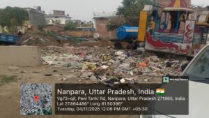 बहराइच। आदर्श नगर पालिका परिषद नानपारा में स्वच्छता व्यवस्था की हकीकत अधिकारियों के घर के आसपास ही देखने को मिल रही है। नगर पालिका के जिम्मेदार अधिकारी के आवास से कुछ ही दूरी पर सड़क किनारे और खाली पड़ी भूमि पर कूड़े का ढेर जमा है, जहां कूड़ा जलता हुआ भी देखा गया। धुआं फैलने से आसपास के लोगों को दिक्कत होना आम बात है।