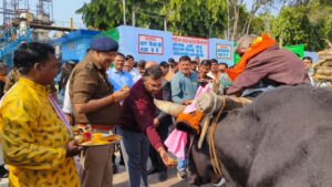 बहराइच 10 नवम्बर। जिलाधिकारी अक्षय त्रिपाठी ने पुलिस अधीक्षक रामनयन सिंह व अन्य अधिकारियों, क्षेत्रीय गणमान्य व संभ्रान्तजनों तथा प्रगतिशील गन्ना कृषकों के साथ वैदिक मंत्रोचार के बीच पारले चीनी मिल, परसेण्डी के डोंगा में गन्ना डालकर पेराई सत्र 2025-2026 का शुभारम्भ किया। पेराई सत्र के शुभारम्भ अवसर पर मिल गेट पर पहुंची प्रथम बैलगाड़ी के बैलों की पूजा कर गुड़ खिलाया गया तथा बैल गाड़ी के साथ गन्ना लेकर आये गन्ना कृषकों को माला पहनाकर स्वागत किया व अंगव़स्त्र भेंट कर सम्मानित किया। इस अवसर पर डीएम व एसपी ने गन्ना किसानों और मिल प्रबन्धन को सफल पेराई सत्र के लिए शुभकामनाएं भी दी।