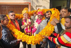 गोंडा उत्तर प्रदेश पंचायती राज ग्रामीण सफाई कर्मचारी संघ जिलाध्यक्ष राघवेंद्र तिवारी के नेतृत्व कटरा बाजार के लोकप्रिय विधायक बावन सिंह व किसान मोर्चा के जिला महामंत्री धर्मपाल सिंह का संघ के पदाधिकारी के द्वारा पगड़ी व माला पहनाकर व बुके देकर स्वागत करते हुए संघ के जिलाध्यक्ष राघवेंद्र तिवारी साथ में प्रदेश उपाध्यक्ष जिला कोषाध्यक्ष अमीर अहमद संगठन मंत्री उधो राम गौतम ब्लॉक अध्यक्ष बेलसर रघुनाथ मौर्य ब्लॉक अध्यक्ष रमेश सिंह ब्लॉक महामंत्री राम निहोर ब्लॉक कोषाध्यक्ष नकुल यादव वरिष्ठ कर्मचारी नेता अनुरुद्र तिवारी संघ के जिलाध्यक्ष श्री तिवारी ने जनपद में कार्यरत सफाई कर्मचारी की समस्याओं से विधायक को अवगत कराया जैसे की 17 साल नियुक्ति हुई हो गया आज तक भी सफाई कर्मचारियों की सेवा नियमावली नहीं बनी है सफाई कर्मचारी की पदोन्नति का रास्ता अभी अवरुद्ध है जबकि सफाई कर्मचारी सरकार के अनुरूप सभी कार्यों को निष्ठा पूर्वक निष्पादन करता है जिस समय कोई भी व्यक्ति घर से नहीं निकलता था उसे समय सफाई कर्मचारी कोरोना की भीषण महामारी में गांव-गांव घर-घर जाकर लोगों की जान को बचाने का कार्य किया जबकि सरकार के द्वारा कर्मचारी की समस्याओं पर ध्यान नहीं दिया जाता है अगर समय रहते सरकार ने कर्मचारियों के समस्या का समाधान नहीं किया तो आने वाले समय में कर्मचारी आर पार की लड़ाई लड़ेगा विधायक ने आश्वासन दिया कि जल्द ही संघ के एक प्रतिनिधिमंडल को मुख्यमंत्री से मुलाकात करवा कर समस्याओं का समाधान कराएंगे इस मौके पर वैभव राज मिश्रा धनीराम शुक्ला दयाशंकर राजेश मिश्रा जयप्रकाश बाबा अनिल कुमार सोहेल वर्मा सहित सैकड़ो कर्मचारी उपस्थित रहे।