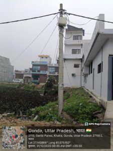 आवास विकास कालोनी गरीबी पुरवा खैरा ब्लॉक क्षेत्र झंझरी , जनपद गोण्डा में विद्युत विभाग की घोर लापरवाही सामने आ रही है। मोहल्ले में लगा बिजली का खंभा बैंड होकर टेढ़ा हो गया है, जिसके चलते मुख्य विद्युत तार कई निवासियों के घरों की छतों को छूते हुए गुजर रहा है। यह स्थिति किसी भी समय बड़े हादसे को जन्म दे सकती है।