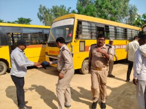 दिनांक -07-04-2026 गोंडा जनपद में स्कूली बच्चों का सुरक्षित परिवहन सुनिश्चित करने के उद्देश्य से परिवहन विभाग द्वारा स्कूली वाहनों की जांच का एक विशेष चेकिंग अभियान 1अप्रैल से 15 अप्रैल तक चलाया जा रहा है। इस अभियान की समीक्षा के लिए उत्तर प्रदेश इंटीग्रेटेड स्कूल व्हीकल मॉनिटरिंग पोर्टल upisvmp.com डिजाइन किया गया है तथा सभी स्कूलों को इस पोर्टल पर ऑनबोर्ड किए जाने के उपरांत उनका निरीक्षण भी किया जा रहा है। इसी क्रम में आज गोंडा एम आर जयपुरिया स्कूल गोंडा तथा ए आई एम एस स्कूल गोंडा का इंस्पेक्शन किया गया।
