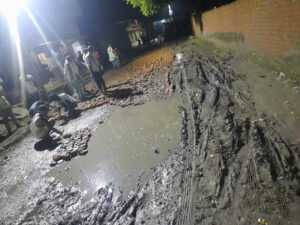 समाजसेवी द्वारा खराब पड़े मुख्य मार्ग को मरम्मत कराया जा रहा है।