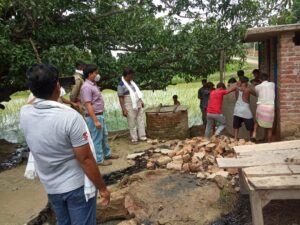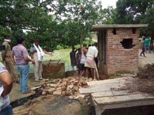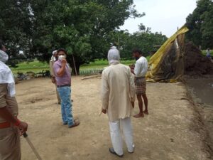 बहराइच- उप जिलाधिकारी महोदय नानपारा श्री राम आसरे वर्मा के आदेश अनुसार नायाब तहसीलदार नानपारा मनीष कुमार वर्मा के नेतृत्व में बनी टीम में शामिल स्थानीय थाना कोतवाली नानपारा पुलिस फोर्स व क्षेत्रीय लेखपाल वाहिद कमाल द्वारा ग्राम पंचायत भलुहिया भारत में कुछ लोगों द्वारा लाकडाउन का नाजायज फायदा उठा कर घूर गड्ढों आदि सरकारी भूमि पर अवैध रूप से अतिक्रमण कर शौचालय व पिपरमेंट की टंकी एवं जानवरों के खाने वाली चन्नी को बना कर कब्जा कर लिया गया था।