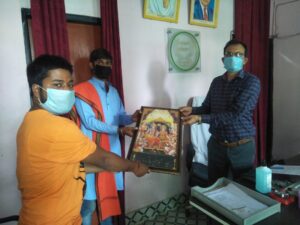 विश्व हिन्दु परिषद बजरंग दल बहराइच की नगर टीम ने उपजिलाधिकारी सदर श्री ज्ञान प्रकाश त्रिपाठी महोदय से सोशल डिस्टेंसिग का पालन करते हुए मुलाकात की॥ नगर सह संयोजक शुभम तिवारी एवं वार्ड संयोजक राम कुमार सिंह ने उपजिलाधिकारी महोदय को राम दरबार स्मृति चिंह के रूप में भेंट की गई ॥ इस मुलाकात में सोशल डिस्टेंसिग का पूरा पालन किया गया ॥ नगर सह संयोजक शुभम तिवारी ने बताया कि उन्होनें बक्शीपुरा वार्ड की समस्या के निवारण हेतु उपजिलाधिकारी महोदय को पत्र सौंपा हैं ॥ इस मुलाकात में बजरंग दल नगर बहराइच की टीम के कई पदाधिकारी एवं कार्यकर्ता मौजूद रहें ॥