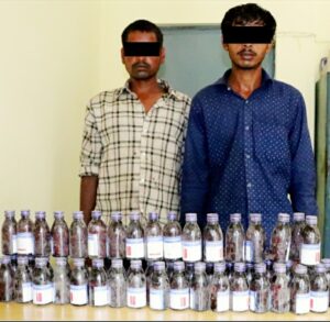 बहराइच- भारत नेपाल सीमा शील होने के बाद भी रूपईडीहा क्षेत्रों से बड़े पैमाने पर नशीली दवाओं की तस्करी की जा रही हैं। लगातार नेपालगंज जिला बाँके पुलिस तस्करी का सामान पकड़ रही हैं। फिर भी तस्करी रुकने का नाम नहीं ले रही हैं।इसी क्रम मे नेपालगंज पुलिस ने गस्त के दौरान नशीली सीरप कोरेक्स 65 बोतलों के साथ दो तस्करो को गिरफ्तार किया है।जिला पुलिस कार्यालय बांके नेपालगंज से प्राप्त जानकारी बुधवार रात नेपालगंज पुलिस की एक टीम भारत नेपाल सीमा पर गस्त कर रही थी तभी दो तस्कर भारतीय क्षेत्र से तस्करी कर उक्त नशीली कोरेक्स नेपालगंज ले जाते हुए दिखाई दिये। जिन्हें पुलिस टीम रोक कर जब तलाशी ली गयीं तो उनके कब्जे से 65 बोतल कोरेक्स बरामद हुई। दोनो तस्करो को जिला पुलिस कार्यालय बाँके मे ले जाकर पुछताछ की जा रही हैं। पकड़े गये उन दोनों तस्करो की पहचान आशीष यादव व राज कुमार यादव निवासी डुडुवा ग्राम पालिका वार्ड नम्बर एक जिला बाँके के रुप मे हुई हैं।